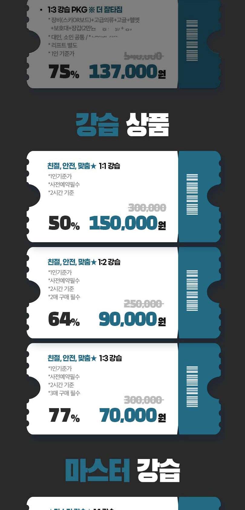 * 1) 원하시는 상품 구매 * 2) 구매 1시간후 레슨상담 및 유선예약 필수 - 강습예약이 완료되면 예약확정 안내 문자가 전송됩니다. * 3) 현장방문, 접수 후 이용(강습 시작 최소 1시간 전까지 도착 바랍니다.)