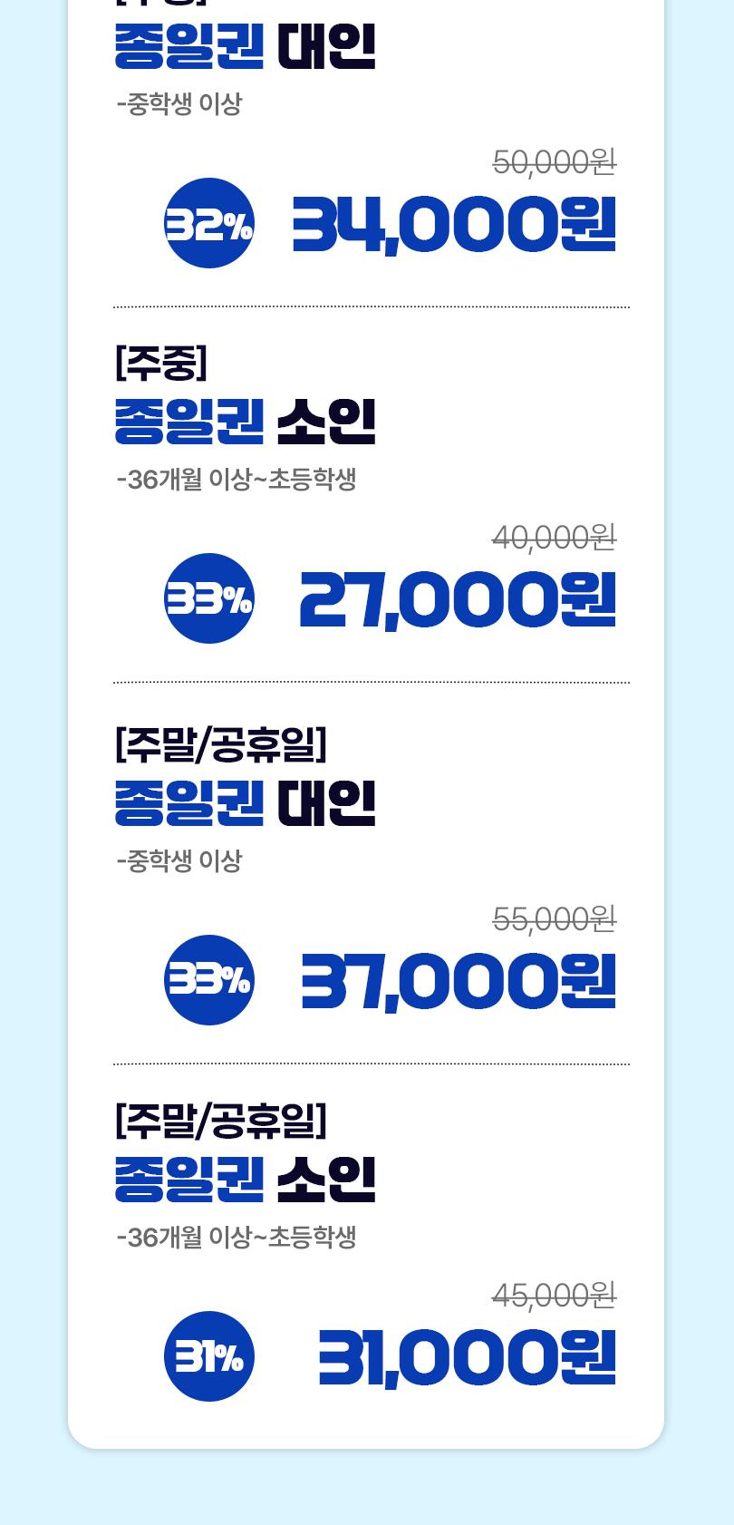 * 36개월 미만은 무료입장 가능합니다.