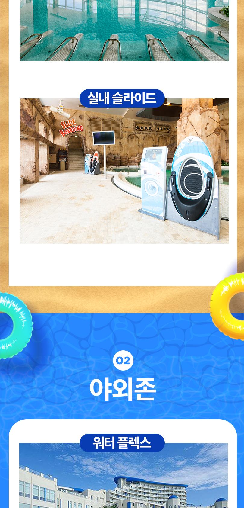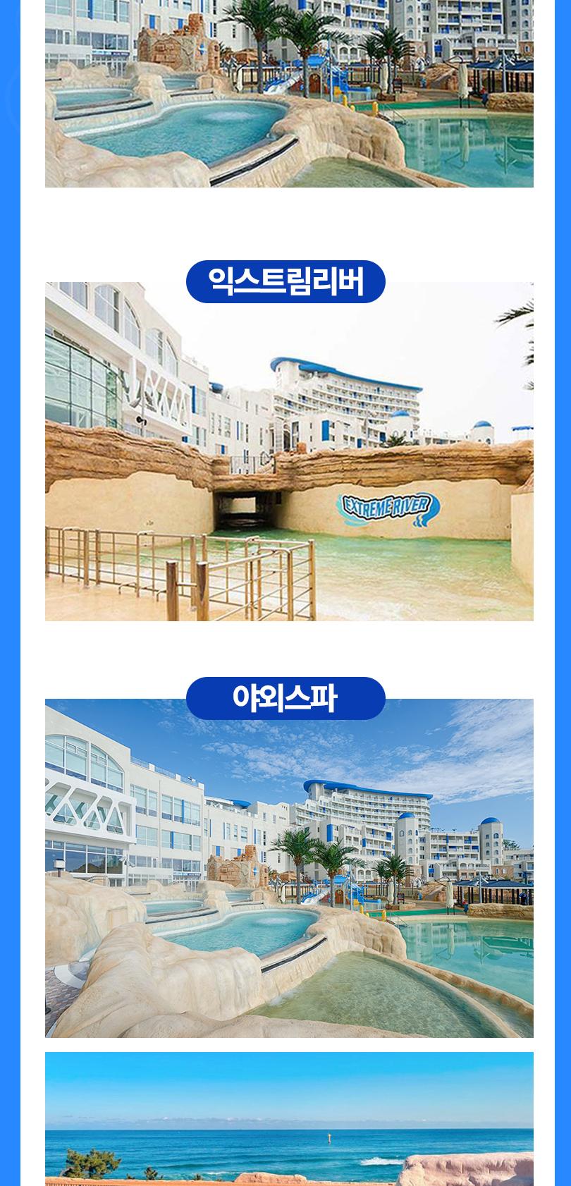 * 운영 시설 : 실내존, 야외스파, MLPS, 패밀리풀, 익스트림리버(주말, 공휴일)