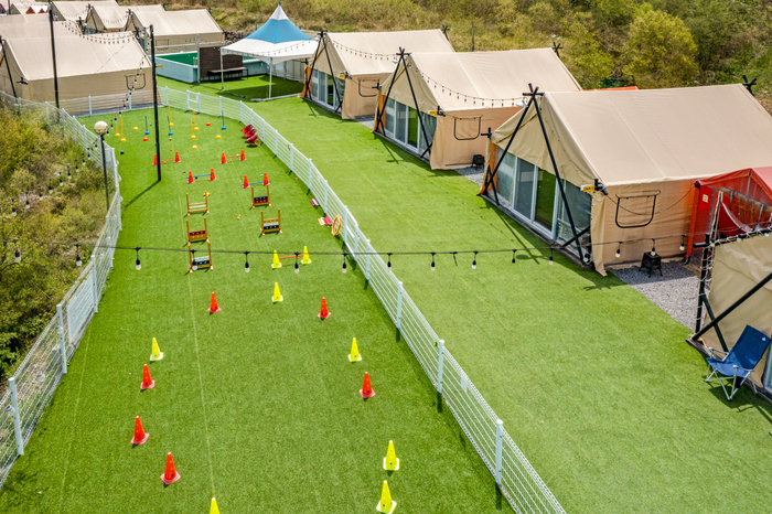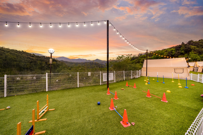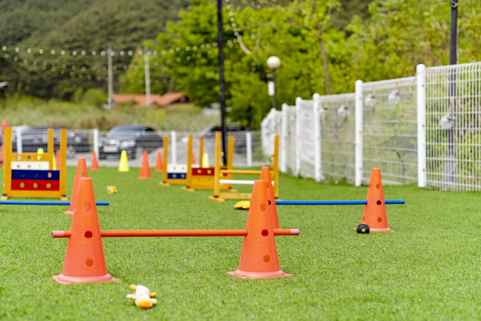전체 인조잔디, 애견운동장, 점프대 등 애견놀이시설 구비